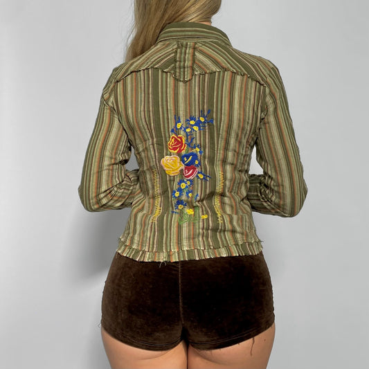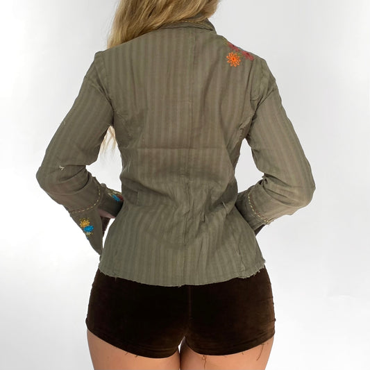 00s Olive Embroidered Button-up