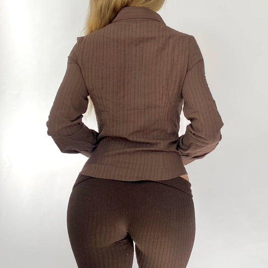 00s Mocha Embroidered Button-up