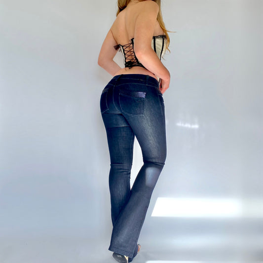 00s Dark Wash Kick Flares