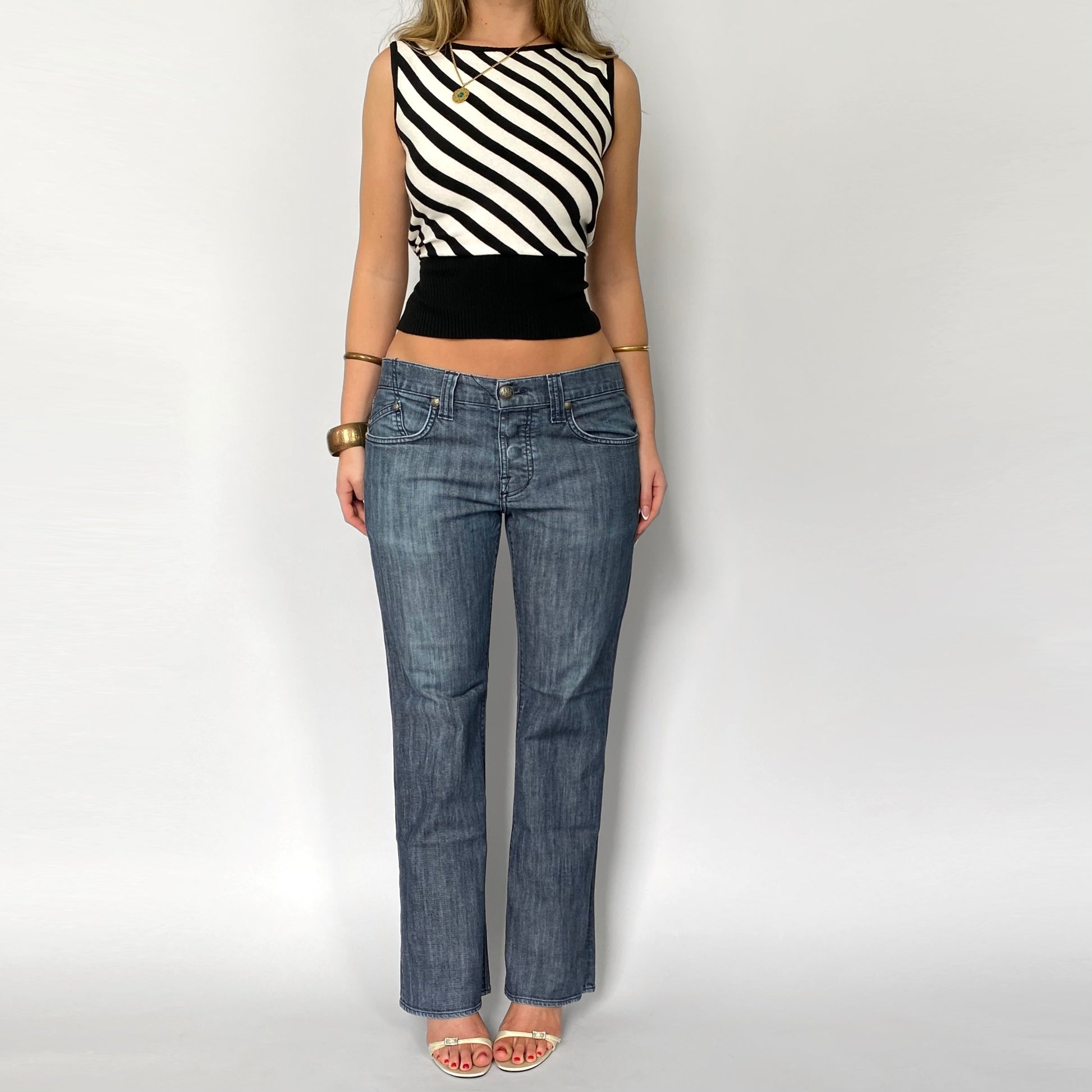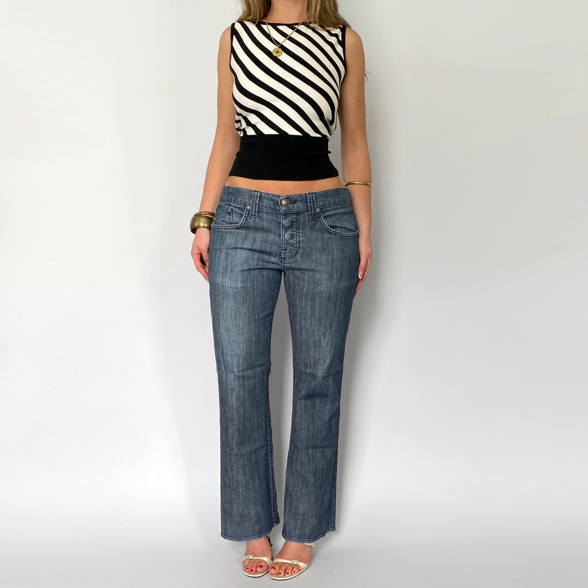 Early 2000s Rock & Republic dark wash jeans. Relaxed comfortable fit with a button fly closure & wide straight leg. Cotton stretch denim, in great condition.