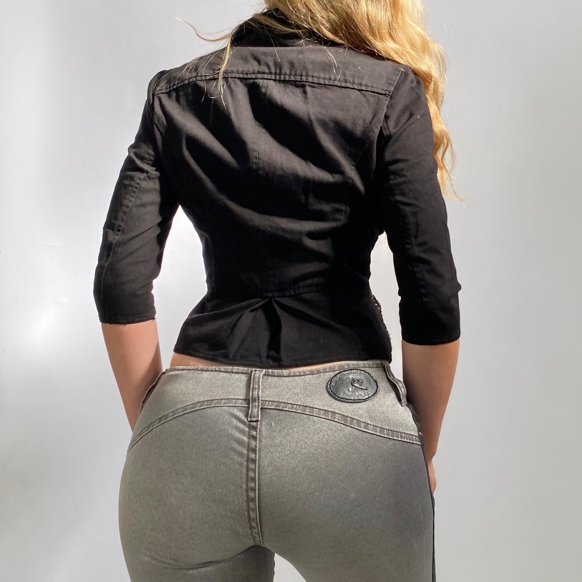 Early 2000s beaded zip-up blazer vest. 100% cotton fabric embellished with beading. Collared neckline with a zip up front. Slim fit 3 quarter sleeves and peplum waist. In great condition.