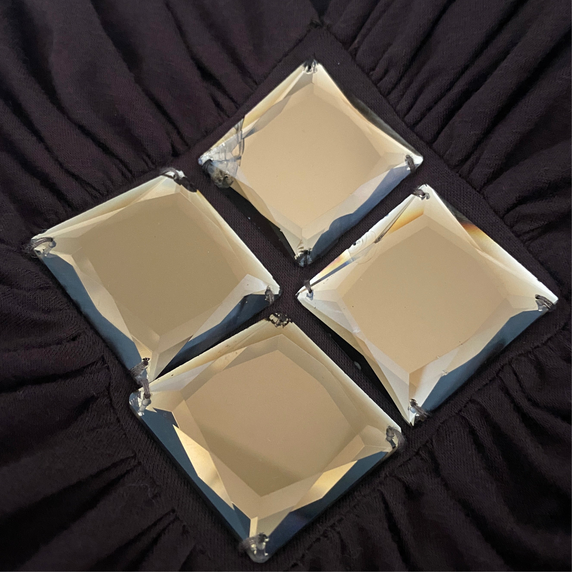 Early 2000s brown flutter mini dress / tunic. Soft stretch fabric clings and drapes well to the body with adjustable ties at waist. Glass embellishments detailing the waist, please see closeup of glass wear in last slide - overall in great condition.