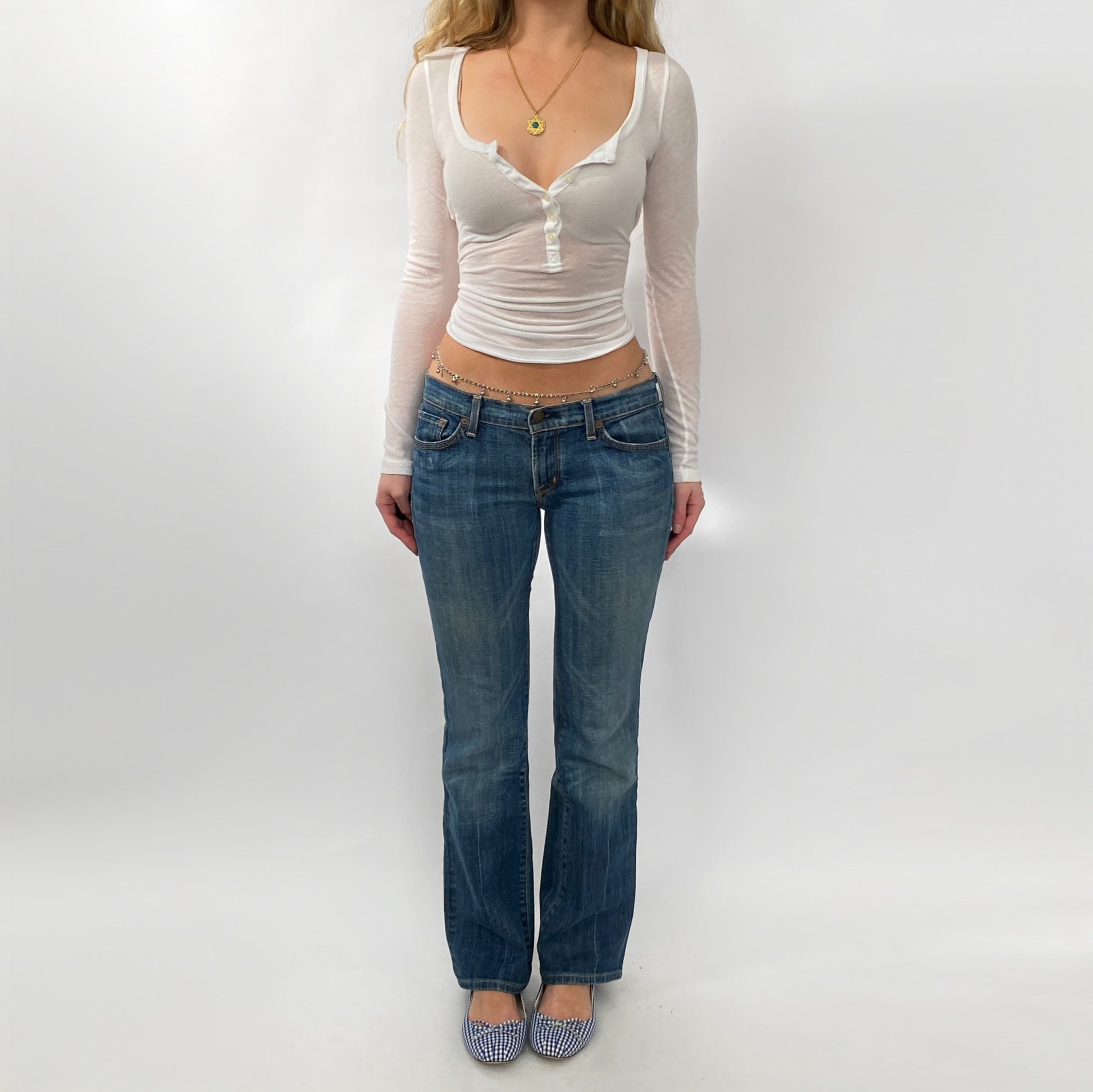 Early 2000s low rise kick flare jeans. Medium wash denim worn in well, 98% cotton 2% spandex. Made in USA by Citizens of Humanity. Style Kelly #001 stretch low waist boot cut. In great condition.